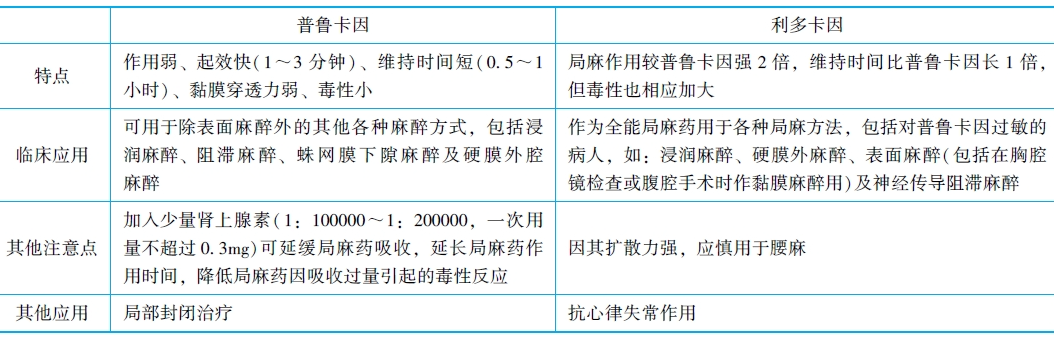 重點記憶普魯卡因胺——不用于表面麻醉。