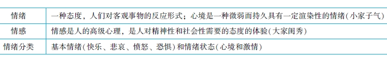 考核多為A1型題,需要掌握的內(nèi)容主要集中在情緒和情感的區(qū)別以及情緒的作用。以上內(nèi)容簡(jiǎn)單歸納為: