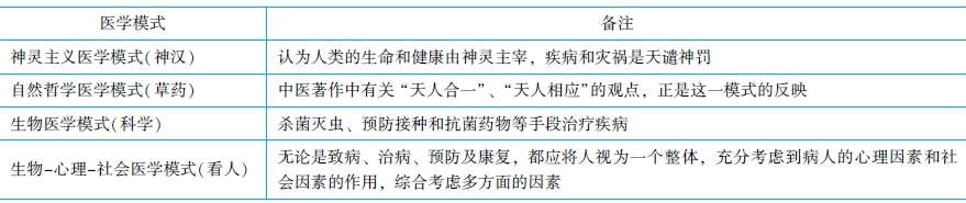 醫(yī)學(xué)模式的發(fā)展經(jīng)歷了神靈主義醫(yī)學(xué)模式、自然哲學(xué)醫(yī)學(xué)模式、生物醫(yī)學(xué)模式以及生物-心理-社會醫(yī)學(xué)模式,其發(fā)展與各個時期的生產(chǎn)力發(fā)展水平是緊密聯(lián)系的。