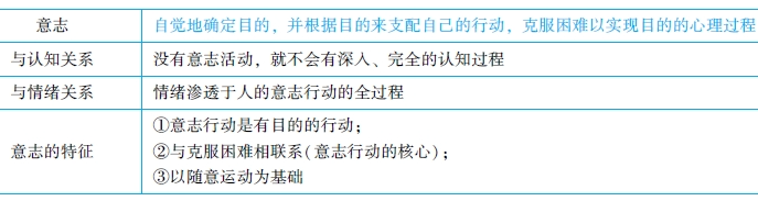 (1)概念:意志是自覺(jué)地確定目的,并根據(jù)目的來(lái)支配自己的行動(dòng),克服困難以實(shí)現(xiàn)目的的心理過(guò)程。