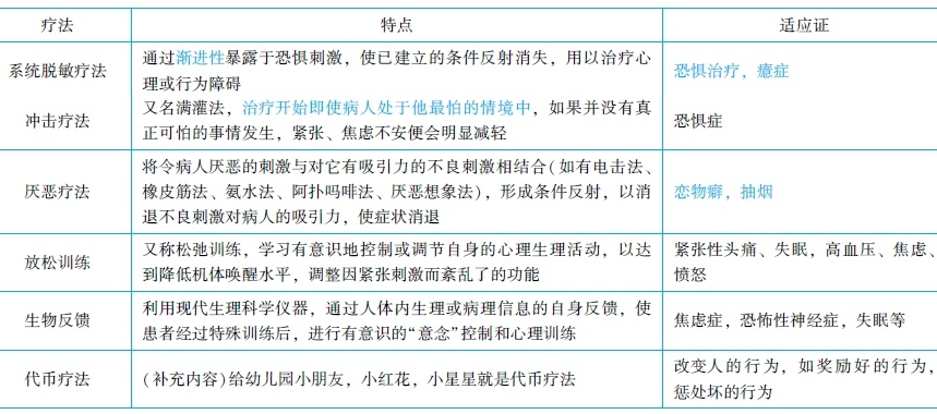 行為主義治療中不同的治療方法的適應(yīng)證