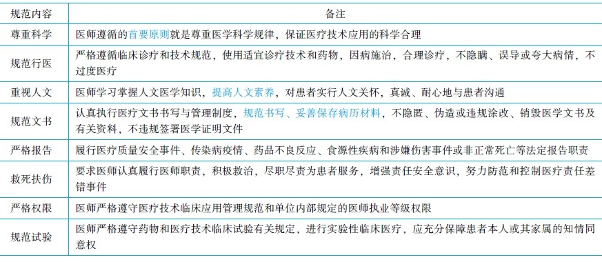 (2)2012年,由我國衛(wèi)生部、國家食品藥品監(jiān)督管理局和國家中醫(yī)藥管理局聯合發(fā)布的《醫(yī)療機構從業(yè)人員行為規(guī)范》中“醫(yī)療機構從業(yè)人員基本行為規(guī)范”的具體內容是:①以人為本,踐行宗旨;②遵紀守法,依法執(zhí)業(yè);③尊重患者,關愛生命;④優(yōu)質服務,醫(yī)患和諧;⑤廉潔自律,恪守醫(yī)德;⑥嚴謹求實,精益求精;⑦愛崗敬業(yè),團結協(xié)作;⑧樂于奉獻,熱心公益。