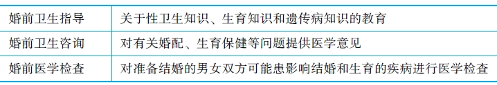 婚前保健服務包括下列內容:①婚前衛(wèi)生指導:關于性衛(wèi)生知識、生育知識和遺傳病知識的教育;②婚前衛(wèi)生咨詢:對有關婚配、生育保健等問題提供醫(yī)學意見;③婚前醫(yī)學檢查:對準備結婚的男女雙方可能患影響結婚和生育的疾病進行醫(yī)學檢查。