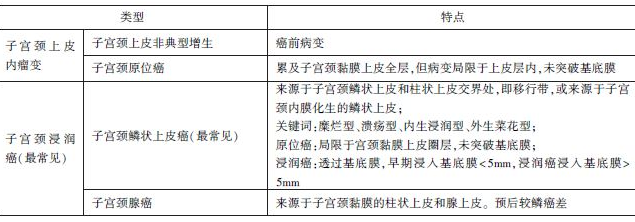 3.子宮頸上皮異型增生依據(jù)其病變程度不同分為:Ⅰ級,異型細(xì)胞局限于上皮的下1/3;Ⅱ級,異型細(xì)胞累及上皮層的下1/3至2/3;Ⅲ級,增生的異型細(xì)胞超過全層的2/3,但還未累及上皮全層。