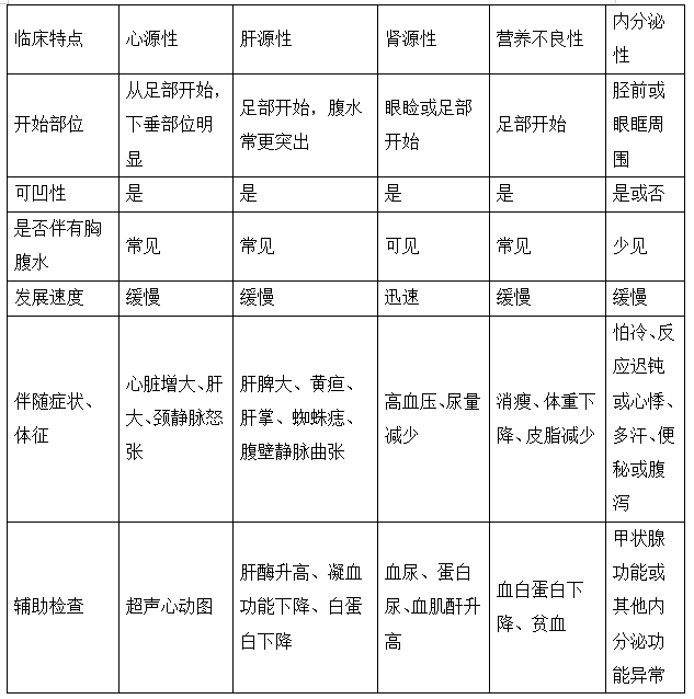 各種常見水腫疾病的臨床特點(diǎn)