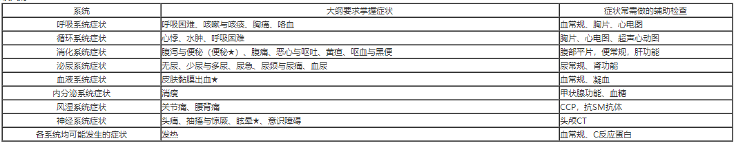 (5)伴隨癥狀:有無發(fā)熱、盜汗,有無心悸、暈厥、呼吸困難,有無其他部位出血,有無雙下肢水腫。(2分)