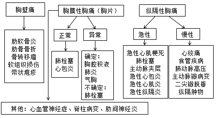 包括肺炎、胸膜炎、氣胸、肺癌、肺血栓栓塞癥、胸部外傷、心絞痛、心肌梗死、急性心包炎、食管癌。