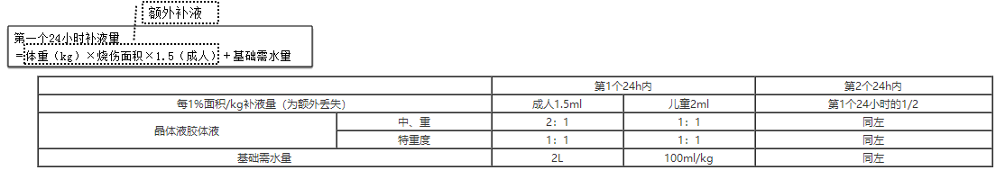 =體重(kg)×燒傷面積×1.5(成人)+基礎(chǔ)需水量