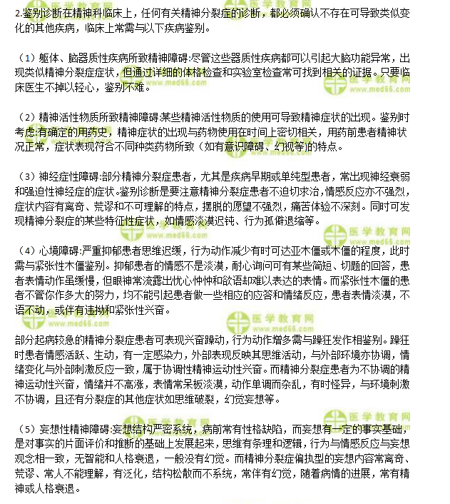 4)排除標準:排除腦器質(zhì)性精神障礙、醫(yī)學(xué)|教育網(wǎng)軀體疾病所致精神障礙、精神活性物質(zhì)所致精神障礙等情況。