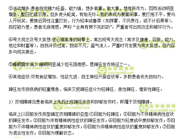 (3)思維奔逸(語速增快、言語迫促等)、聯(lián)想加快或意念飄忽的體驗醫(yī)學(xué)|教育網(wǎng);
