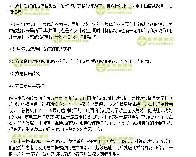 2)抗癲癇藥:當(dāng)碳酸鋰治療效果不佳或不能耐受碳酸鋰治療時可選用此類藥物醫(yī)學(xué)|教育網(wǎng)。