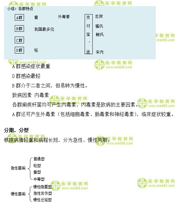 細(xì)菌性痢疾為臨床助理醫(yī)師傳染病學(xué)中的考點(diǎn),為方便大家備考,在此醫(yī)學(xué)教育網(wǎng)小編為大家整理細(xì)菌性痢疾病原學(xué)、急性菌痢普通型核心特點(diǎn)小結(jié)等相關(guān)考點(diǎn),具體內(nèi)容如下: