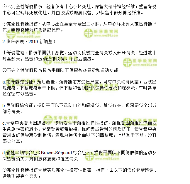 ①脊髓震蕩:脊髓發(fā)生超限抑制,功能處于停滯狀態(tài),但脊髓神經(jīng)細胞結(jié)構(gòu)正常,無形態(tài)學(xué)改變。