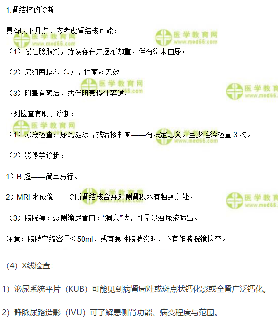 腎結(jié)核的診斷——臨床助理《泌尿系統(tǒng)》考點(diǎn)