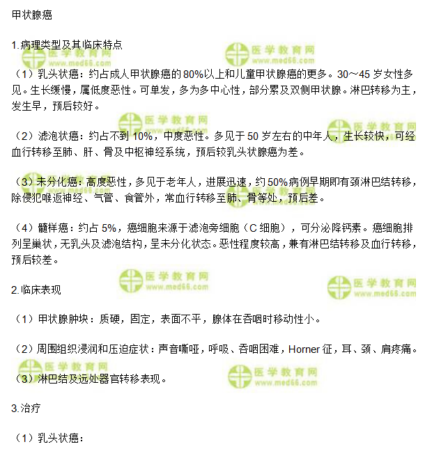 關(guān)于“臨床助理《代謝、內(nèi)分泌系統(tǒng)》:“甲狀腺癌”考點(diǎn)”相關(guān)信息,相信備考臨床執(zhí)業(yè)助理醫(yī)師考試的考生都在關(guān)注,為方便大家備考,在此醫(yī)學(xué)教育網(wǎng)小編為大家整理如下內(nèi)容: