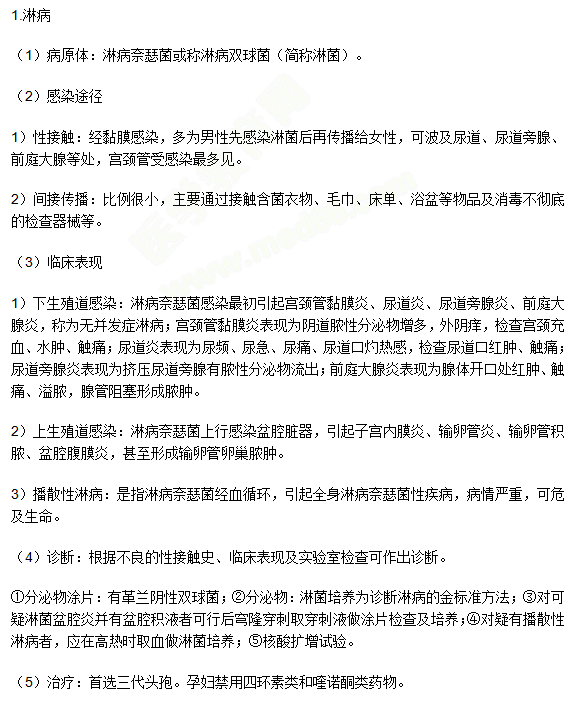 臨床助理醫(yī)師《傳染病、性傳播疾病》考點(diǎn):淋病