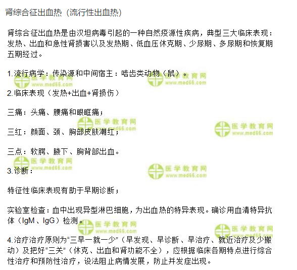 “腎綜合征出血熱”——臨床助理醫(yī)師《傳染病、性傳播疾病》考點(diǎn)