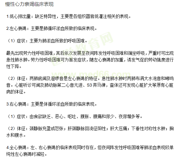 慢性心力衰竭的臨床表現(xiàn)——臨床助理醫(yī)師心血管系統(tǒng)考點