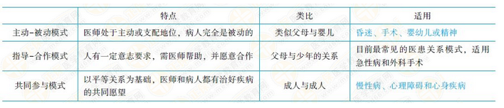 4.醫(yī)患關系模式是用來描述醫(yī)患之間的技術關系和非技術關系的,也是對醫(yī)患關系不同情況的概括和總結的標準式樣。依據在醫(yī)療措施的決定和執(zhí)行中醫(yī)生和患者各自主動性的大小分為主動-被動模式、指導-合作模式和共同參與模式。