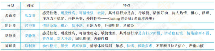 3.氣質(zhì)分型古希臘名醫(yī)希波克拉底將人的氣質(zhì)分為四型,并認(rèn)為人有四種體液:血液、黃膽汁、黑膽汁和黏液,根據(jù)不同體液在人體內(nèi)的優(yōu)勢,把氣質(zhì)命名為多血質(zhì)、膽汁質(zhì)、抑郁質(zhì)和黏液質(zhì)。