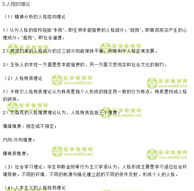 關(guān)于“臨床執(zhí)業(yè)助理醫(yī)師醫(yī)學(xué)心理學(xué)考點:醫(yī)學(xué)心理學(xué)基礎(chǔ)的人格”相關(guān)內(nèi)容,相信參加臨床執(zhí)業(yè)助理醫(yī)師考試的考生都想知道,為方便大家了解,在此醫(yī)學(xué)教育網(wǎng)小編為大家整理如下內(nèi)容: