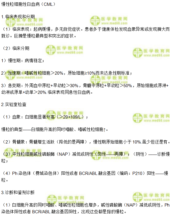 關(guān)于“臨床助理“血液系統(tǒng)”考點:慢性粒細胞白血病”相關(guān)內(nèi)容,相信參加臨床執(zhí)業(yè)助理醫(yī)師考試的考生都在關(guān)注,為方便大家了解,在此醫(yī)學教育網(wǎng)小編為大家整理如下內(nèi)容: