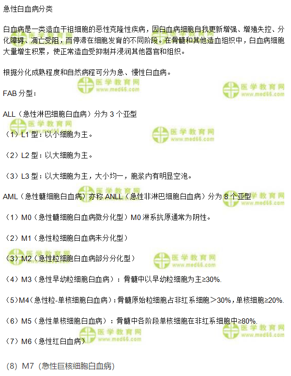 關(guān)于“臨床助理血液系統(tǒng)“急性白血病分類”考點(diǎn)”相關(guān)內(nèi)容,相信參加臨床執(zhí)業(yè)助理醫(yī)師考試的考生都在學(xué)習(xí),為方便大家掌握,在此醫(yī)學(xué)教育網(wǎng)小編為大家整理如下內(nèi)容: