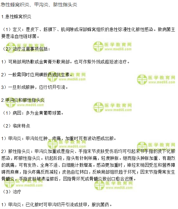- · 急性蜂窩織炎、甲溝炎、膿性指頭炎的病—臨床助理考點