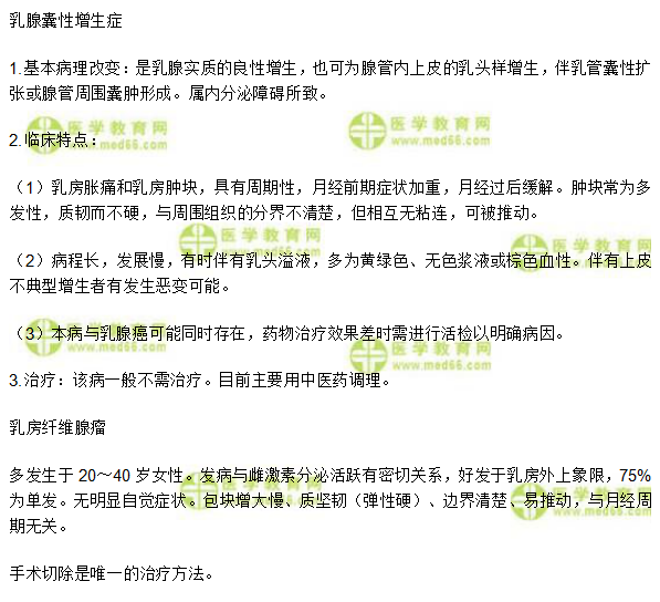 - · 乳腺囊性增生病與乳腺纖維腺瘤-2021年臨床執(zhí)業(yè)助理醫(yī)師考試考點(diǎn)與試題