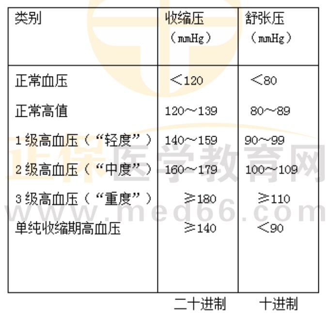 知識(shí)點(diǎn):血壓水平分級(jí)