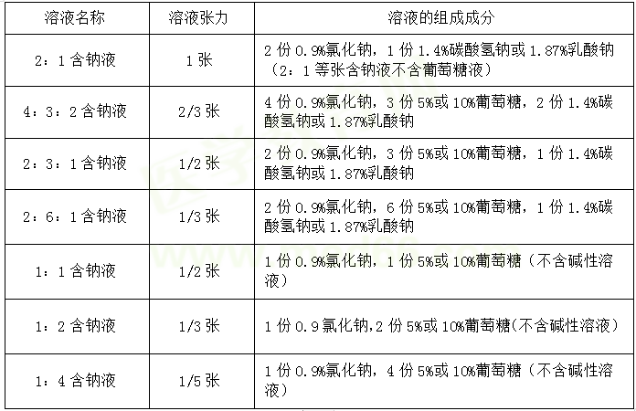 五、幾種常用混合溶液的名稱、張力與組成成分