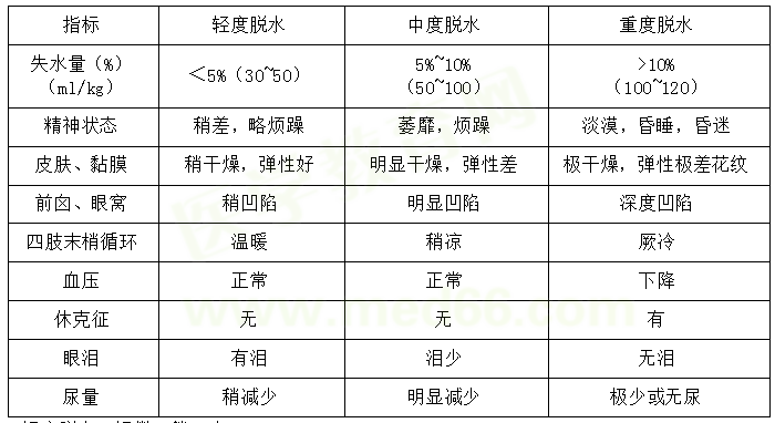 不同程度脫水的臨床表現(xiàn)與判斷標(biāo)準(zhǔn)