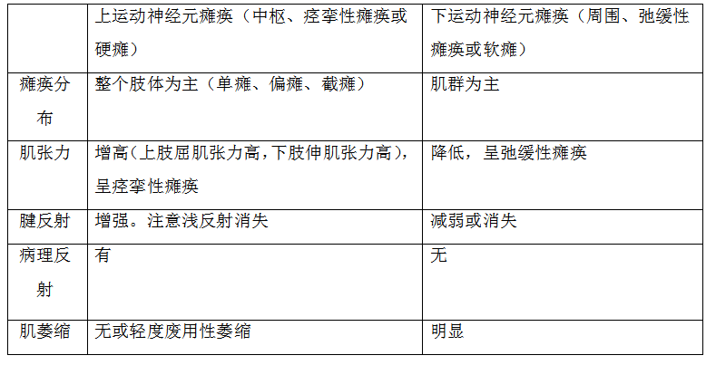 上、下運(yùn)動(dòng)神經(jīng)元癱瘓的臨床特點(diǎn)