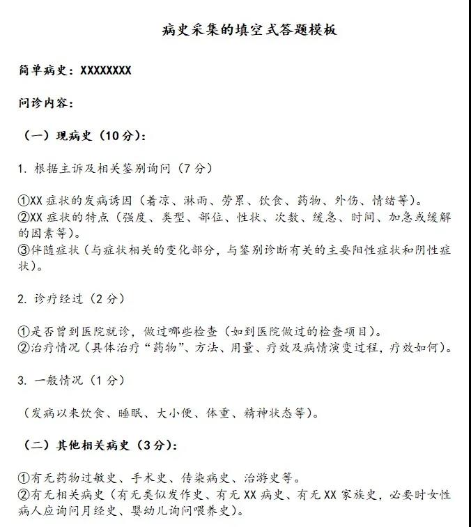 臨床執(zhí)業(yè)助理醫(yī)師實踐技能病史采集答題模板,醫(yī)學教育網小編搜集整理如下: