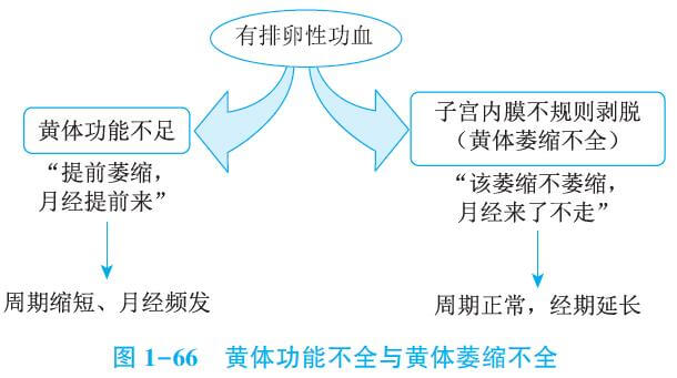 1.病因及病理生理 由于下丘腦-垂體-卵巢軸調(diào)節(jié)功能紊亂或溶黃體機制失常引起黃體萎縮不全,內(nèi)膜持續(xù)受孕激素影響,以致不能如期完整脫落。