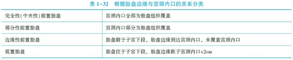 1.完全性前置胎盤 初次出血早,在妊娠28周左右,稱為“警戒性出血”。