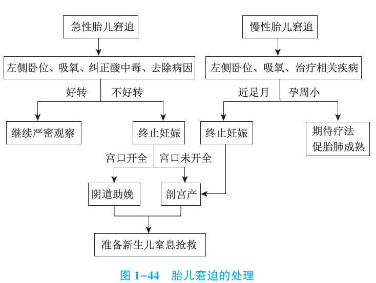 應針對病因,視孕周、胎兒成熟度及胎兒窘迫程度決定處理。