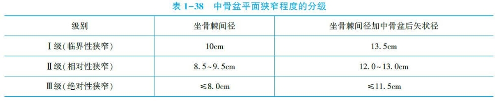 坐骨棘間徑<10cm,坐骨切跡寬度<3橫指——為中骨盆平面狹窄。