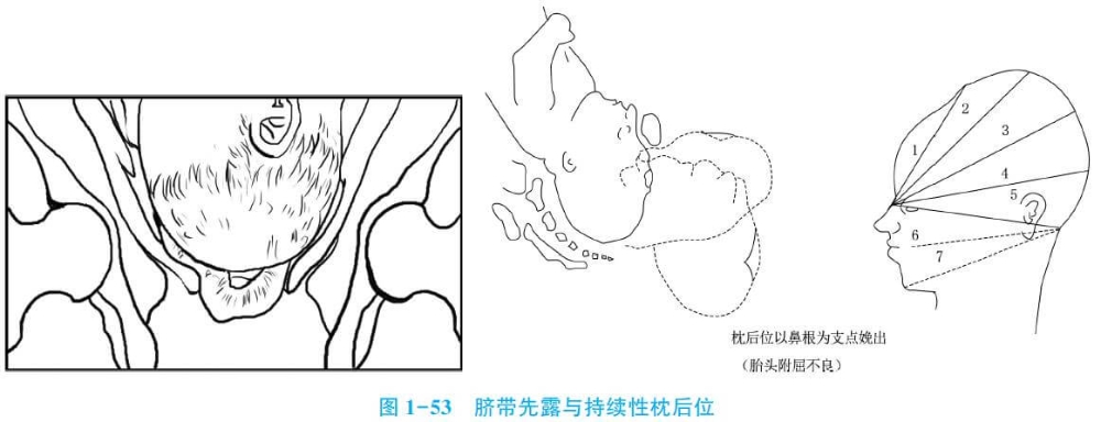 (3)其他:胎頭高浮不能壓迫子宮下段可致宮縮乏力;子宮收縮力直接作用于胎膜,可致胎膜早破;臍帶可低于胎先露先進入骨盆腔,導致臍帶先露、臍帶脫垂。