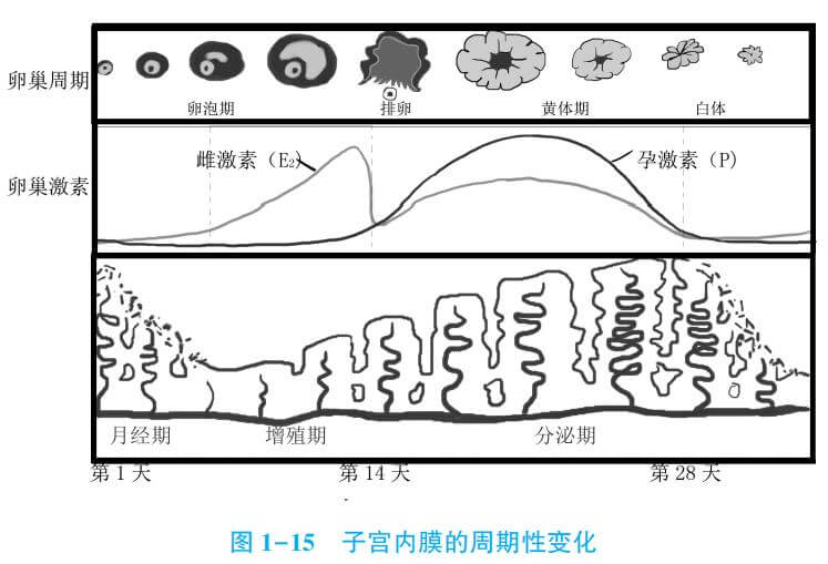 月經(jīng)周期第15~28日,與卵巢周期中的黃體期相對應(yīng)。黃體分泌孕激素使子宮內(nèi)膜呈分泌反應(yīng),稱為分泌期。此時,子宮內(nèi)膜厚且松軟,有利于受精卵著床。分泌期也分早期、中期、晚期。