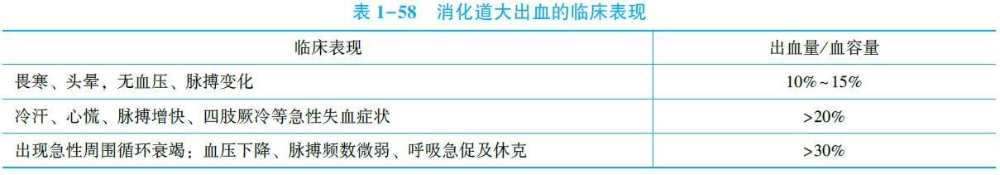 ①由平臥位變?yōu)樽粫r,血壓下降(>15~20mmHg)、心率加快(>10次/分),血容量明顯不足;②收縮壓<90mmHg、心率>120次/分,伴有面色蒼白、煩躁不安或神志不清、四肢濕冷,則進入休克狀態(tài),屬大量出血,應(yīng)積極搶救。