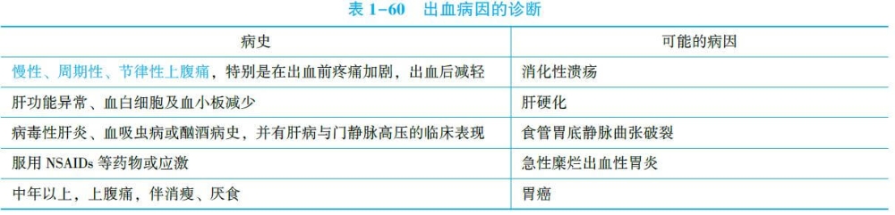 2)鑒別上、下消化道出血:①嘔血:多提示上消化道出血;②黑糞:大多來自上消化道出血,高位小腸乃至右半結(jié)腸出血亦可;③血便:大多來自下消化道出血。但若上消化道短時間內(nèi)大量出血,也可表現(xiàn)為暗紅色甚至鮮紅色血便。