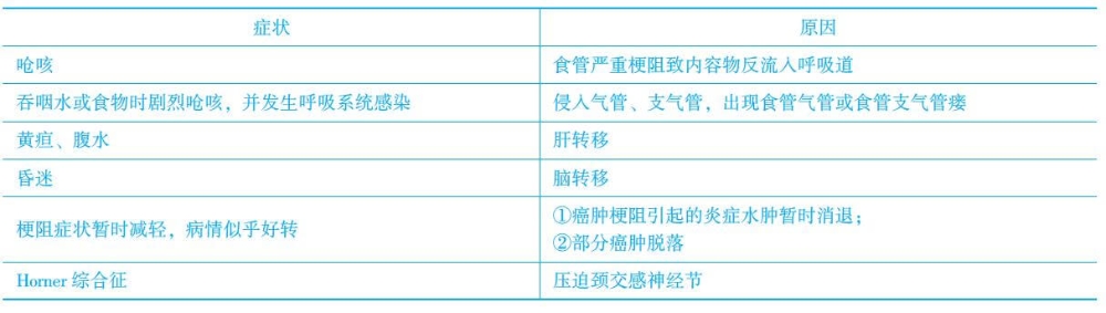 2.進(jìn)展期(中晚期) 典型癥狀為進(jìn)行性咽下困難。