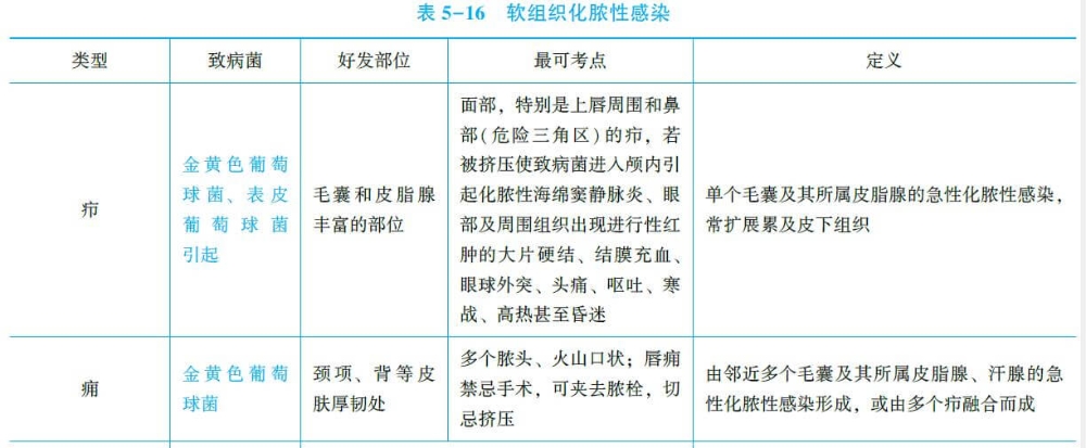 一、5種軟組織化膿性感染核心考點(diǎn)