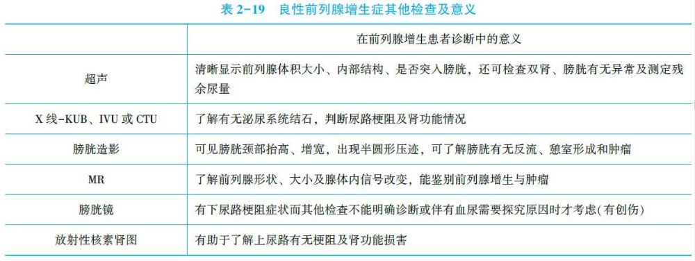 2.鑒別診斷 前列腺癌、膀胱頸攣縮、尿道狹窄和神經(jīng)源性膀胱功能障礙等引起的排尿困難。