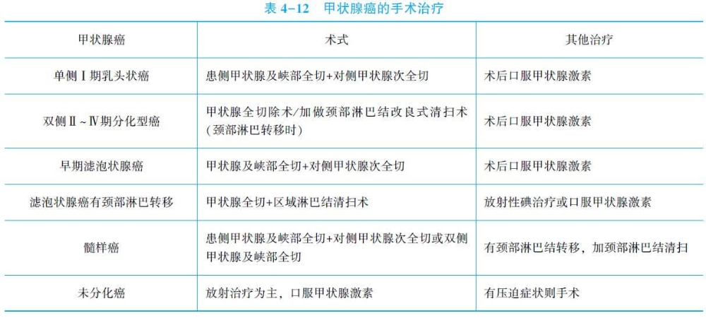 手術(shù)是除未分化癌以外各型甲狀腺癌的基本治療方法,并輔助應(yīng)用核素、甲狀腺激素及放射線外照射治療。