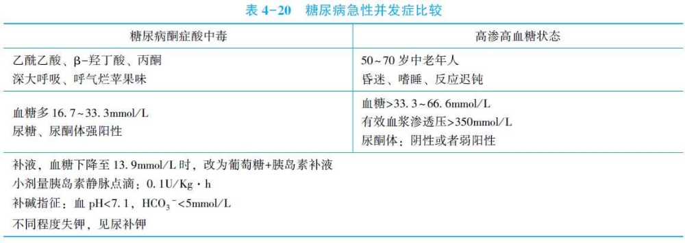 2.高滲高血糖狀態(tài) 多見于50~70歲的中、老年人,多數(shù)患者無糖尿病史或僅有輕度糖尿病癥狀。嚴重的高血糖、脫水、血漿滲透壓升高,無明顯酮癥酸中毒,患者常有意識障礙或昏迷。