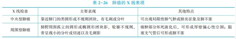 (1)周圍型肺癌早期可無(wú)癥狀,常在胸部X線檢查時(shí)發(fā)現(xiàn)。