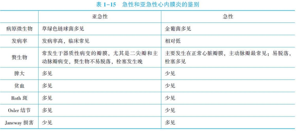 2.急性感染性心內(nèi)膜炎 多由金黃色葡萄球菌感染引起,少數(shù)病例可由肺炎鏈球菌、A族鏈球菌、淋球菌和流感嗜血桿菌感染所致。