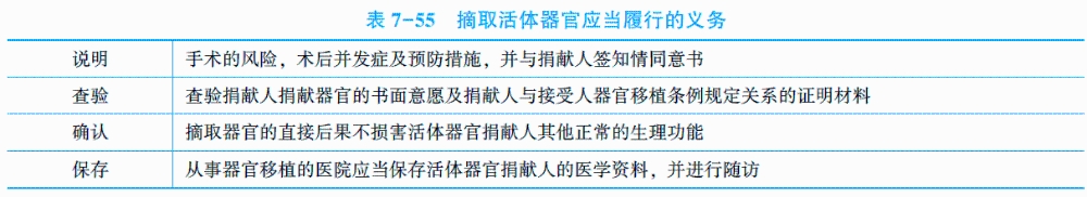 4.摘取活體器官應(yīng)當(dāng)履行的義務(wù) 從事人體器官移植的醫(yī)療機(jī)構(gòu)及其醫(yī)務(wù)人員摘取活體器官前,應(yīng)當(dāng)履行下列義務(wù):